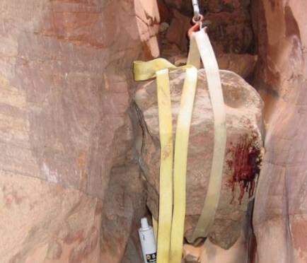 The pain was instant, the situation horrifying. He tried to move, lift, and wedge the rock away. Nothing worked. His arm was hopelessly, brutally trapped.
